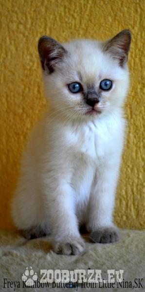 Popis: CHS from Little Nina predá britské mačiatka vo farbe colorpoint s modrými očami. VRH F Fendi Magic Bay - BLH h 33-M - voľná Funny Fantastic Bee - BSH j 33 -M- voľná Freya Rainbow Butterfly - BSH j -M- - voľná Všetký mačiatka majú krvnú skupinu A. VRH G Geebee of Sunshine - BRI c 33 -K- krvná skupina B- voľný Galaxy full of Stars- BRI c 33-K -krvná skupina A- voľny Mačiatka v čase odberu budu očkované, odčervené ,čipované , naučené na WC a škrábadlo. Viac info telefonicky,e-mailom, www.britisch.wbl.sk