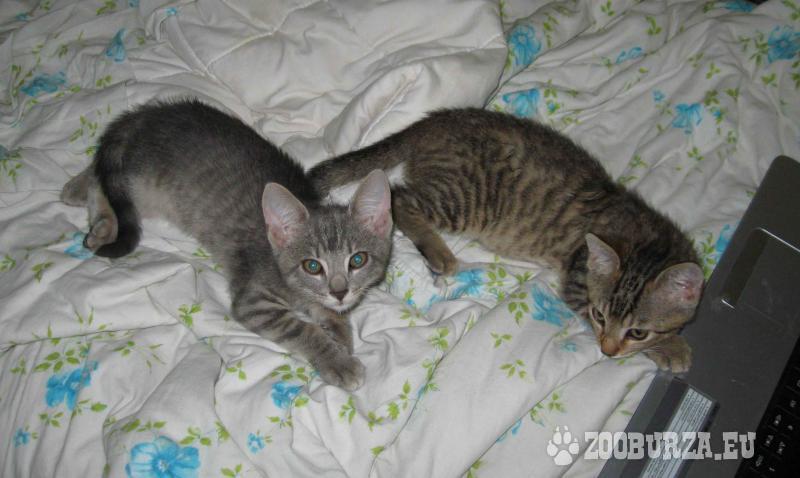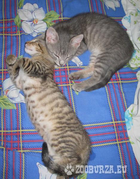 Popis: 2 krásne, tigrované, hravé mačiatka hľadajú nový domov. Sú to kocúrikovia-bračekovia. Boli nájdené pri bloku a momentálne sú v dočasnej starostlivosti v byte v Košiciach. Vedia samé všetko papať a hneď sa naučili na mačací záchod. Majú približne tri mesiace. Sú veľmi prítulné a hravé. Hodia sa do bytu, alebo do domu na dedinu, kde by mali prístup aj dnu. V prípade seriózneho záujmu je treba prísť s prepravkou aby ho/ich zobrať bezpečne domov. Prosíme len do láskavých a starostlivých rúk, aby sa nedostali opäť na ulicu.