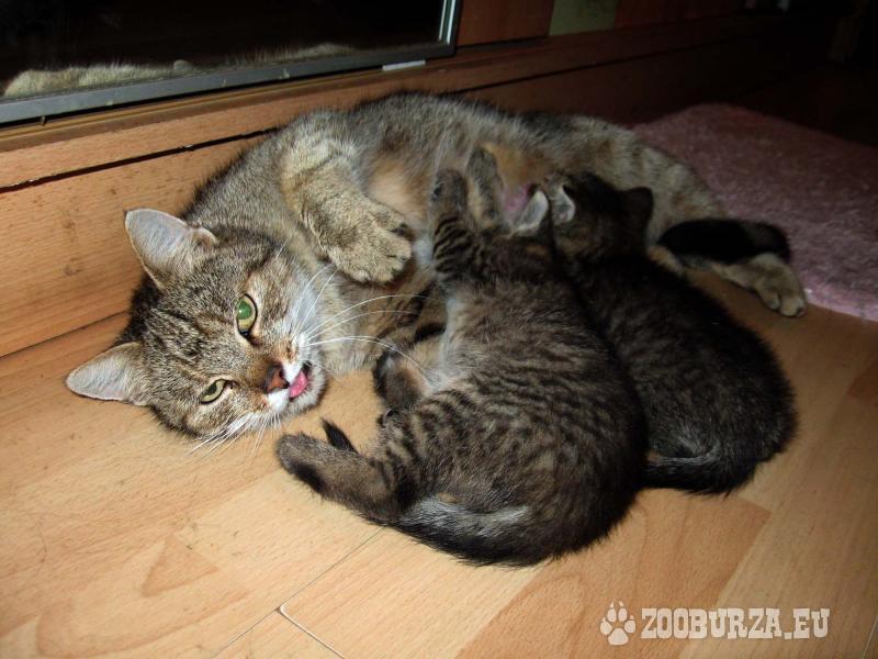 Popis: Darujem dve krásne tmavo-tigrované mačiatka - jeden kocúrik a jedna mačička - mačička je tá menšia. Aj jednotlivo. Boli zachránené pred zimou z ulice a teraz sú v dočasnej starostlivosti v Košiciach. Sú milučké, hravé a zvyknuté na ľudí. Vedia už papať samé konzervu pre mačiatka, ich mamka ich ešte kŕmi, a potom sa zrejme bude musieť vrátiť na ulicu, keďže ja si ich nemôžem nechať :( Takže týmto spôsobom hľadám domov aj pre ňu - je hnedo-tigrovaná a strašne prítulná a vďačná. Mačiatka majú približne mesiac a už vedia chodiť na mačací záchod. Sú vhodné do bytu, alebo domu s prístupom v zime dnu. Prosím, len do dobrých a starostlivých rúk, aby sa nedostali späť na ulicu...Kontakt: 0948 067 816
