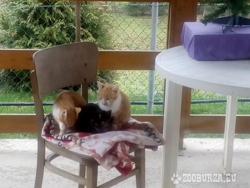 Popis: Darujem tri mačičky, ktoré sme našli opustené bez mamičky. Dve majú farbu.bielo-ryšavú a jedna je čierno-ryšavá. Majú asi tri mesiace. Sami papajú a sú milé. Asi boli naučené na vonku, lebo dnu sa boja ísť. Zatiaľ majú u nás mačací domček. My už máme viac adoptovaných mačičiek a staráme sa aj o susedinu. Hľadám im preto nový domov.