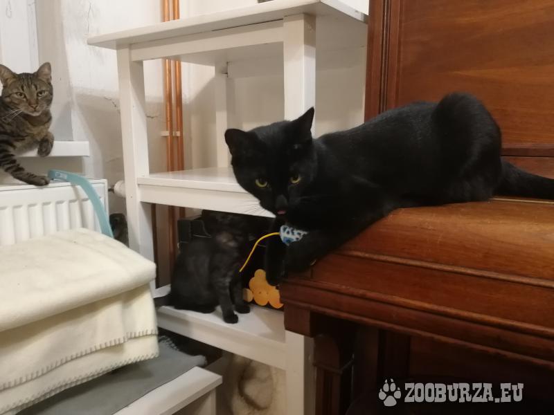 Popis: Len do dobrých rúk darujeme 8 mesačnú čiernu mačičku Maggie a 8mesačného kocúrika Barta aj osobitne. Sú to súrodenci nalezenčekovia. Sú FeLV/FIV negat., odčervení, odblškovaní a vykastrovaní. Majú hygienické návyky. Sú to veľkí mojkoši. Micuškám hľadáme dobrých ľudí, ktorí by ich mali radi a poskytli im domov so stravou vnútri. Bližšie info v maili alebo na t.č. 0907200988.