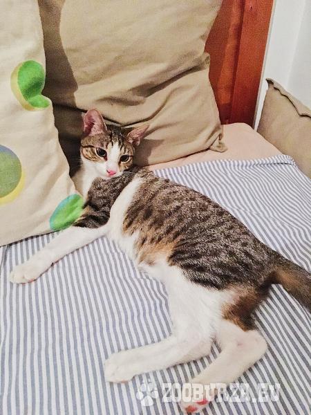 Popis: Obaja sú kocúrikovia ktorý spolu vyrastali. Znášajú veľmi dobre. Čierny kocúrik sa vola Kolumbus lebo vždy bol taký objaviteľ. Šedo biely sa volá Leo a je veľmi zlatý. Obaja sú komplet očkovaný, odčervený a úplne zdravý. Majú veľmi priateľskú povahu a radi sa túlia a nechajú hladkať. Sú vycvičený chodiť na záchodík a celkovo sú veľmi čistotný. Najradšej by sme si ich nechali lebo nám prirástli k srdcu, avšak priateľka je alergická a k tomu máme malý byt. Radi by sme boli ak by si ich zobrala rodina so záhradou kde sa môžu bezpečne pohybovať. Taktiež ideálne by bolo ak zostanú spolu keďže spolu aj vyrastali sú nerozlučná dvojica. Ak by ste mali záujem môžete my zavolať a prisť sa pozrieť :)
