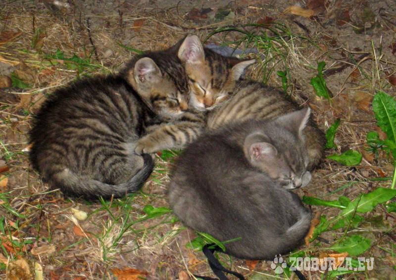 Popis: Krásne mačiatka hľadajú domov, nachádzajú sa vonku pri bloku, pretože sa tam narodili a my nemáme možnosť zobrať ich do bytu, tak pre ne aspoň hľadáme slušných majiteľov. Sú milé a hravé - hodia sa do domu na dedinu, alebo do bytu. Všetky 3 sú kocúriky. Zatiaľ sú vonku pri mame a žijú len z toho, kto im čo prinesie, preto by im bolo lepšie a bezpečnejšie v nejakej dobrej domácnosti. V prípade seriózneho záujmu by sa dalo chytiť jedno, alebo viaceré. Len do láskavých a starostlivých rúk.