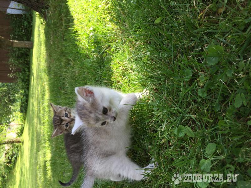 Popis: Darujeme 3 mesačné mačiatka, odčervené, hravé, vhodné aj pre deti, jeden je bielosivý kocúrik a druhá je žíhavá mačička , k nim darujeme aj potravu pre mačičky aj misku na papanie ...
