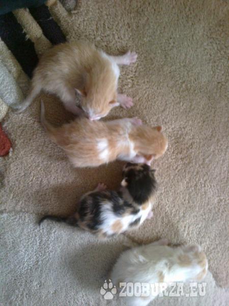 Popis: Do dobrých rúk darujem štyri milé mačiatka. Traja ryšavo bieli kocúrikovia a troj farebná mačička súrne hľadajú domov. Odber je možný asi za štyri týždne. Mačiatka odovzdám vykúpané. Za ozvanie vopred Ďakujem :D