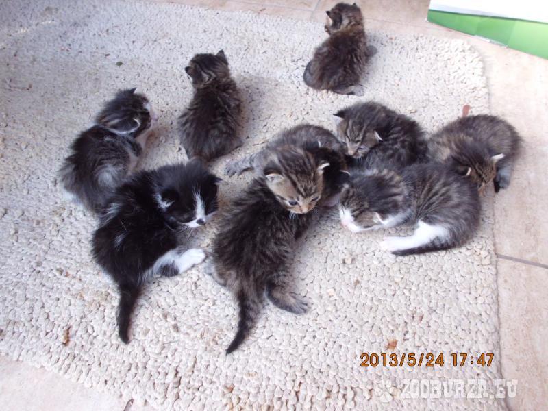 Popis: Darujem do dobrých rúk mačiatka. Narodili sa 6 a 9. maja. Máme ich 9 a sú krásne. Určite si vyberiete. Zatial piju mliečko od mamy mačky, ale predpokladám, že v polovici júna je možný odber. Byvame v Bratislave - Záhorska Bystrica.