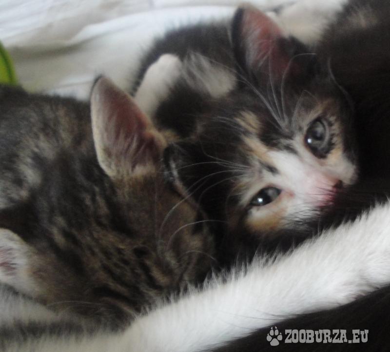Popis: darujem mačiatka: kocúrika a cicu, súrodencov. Obľubujú ľudskú spoločnosť ale aj iné mačky. Odčervené, naučené na mačacie WC. Vhodné do domu so záhradou. Zvyknuté byť cez deň vonku a v noci spinkať v byte alebo inom prístrešku.