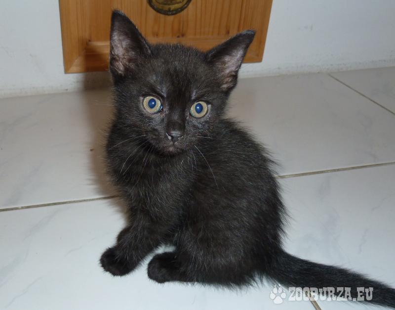 Popis: Darujem polrocnu ciernu macicku. Je cistotna, vychovana, zdrava, velmi pritulna a hrava. Nasa starsia macka na nu velmi ziarli, preto ju musime dat prec.