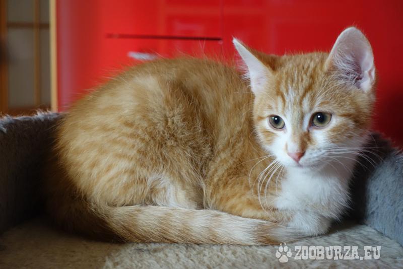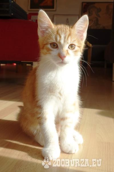 Popis: Kocúrko sa narodil 7.8.2016 našej mačičke Eliške. Je to zlatučké mačiatko naučené na mačací záchodík aj škrabadielko. Chodí aj von, ale teraz keď je zimka, tak je radšej vnútri. Je vhodný aj do domu aj do bytu. Naša mačička ho učila aj myši loviť, tak snáď sa od nej niečo priučil. Je už 3x odčervený a dostal prvú dávku očkovania. Papá granulky aj mäsko. Je naučený aj na psíky.