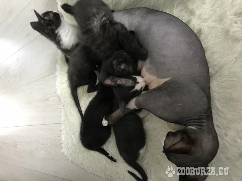 Popis: Predám krásne mačiatka don Sphynx. Sú narodené 23.5.2017. Možný odber je 23.7.2017. Sú naučené na záchod, strihanie nechtikov. Sú moc prítulne. Srsť majú po tatovi, ktorý je donsky. Postupne im opadáva a budú hole. Možnosť dohody na cene. Typ srsti velur flock.