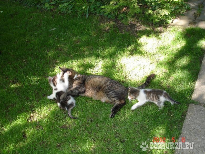 Popis: Darujem mačiatka v okolí Bratislavy, majú približne niečo vyše mesiaca, sú hravé a neboja sa veľmi ľudí. Vedia už samostatne papať. V ponuke sú dva kocúry a jedna mačička(bielo-tigrovaná)